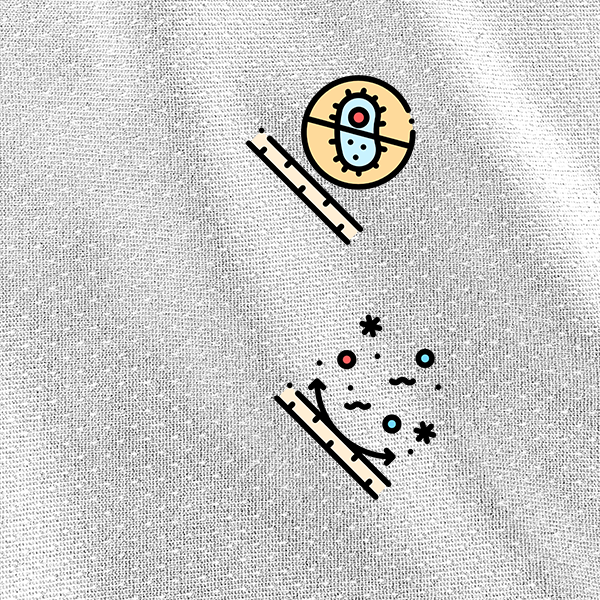 The fabric has undergone antimicrobial treatment to inhibit the growth of three major bacterial groups.